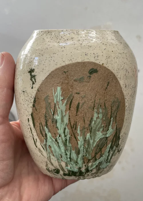 Inspired by the spotted gum forests of the South Coast of NSW. Winner of the Surface Decoration Prize at Canberra Potters 2023.
